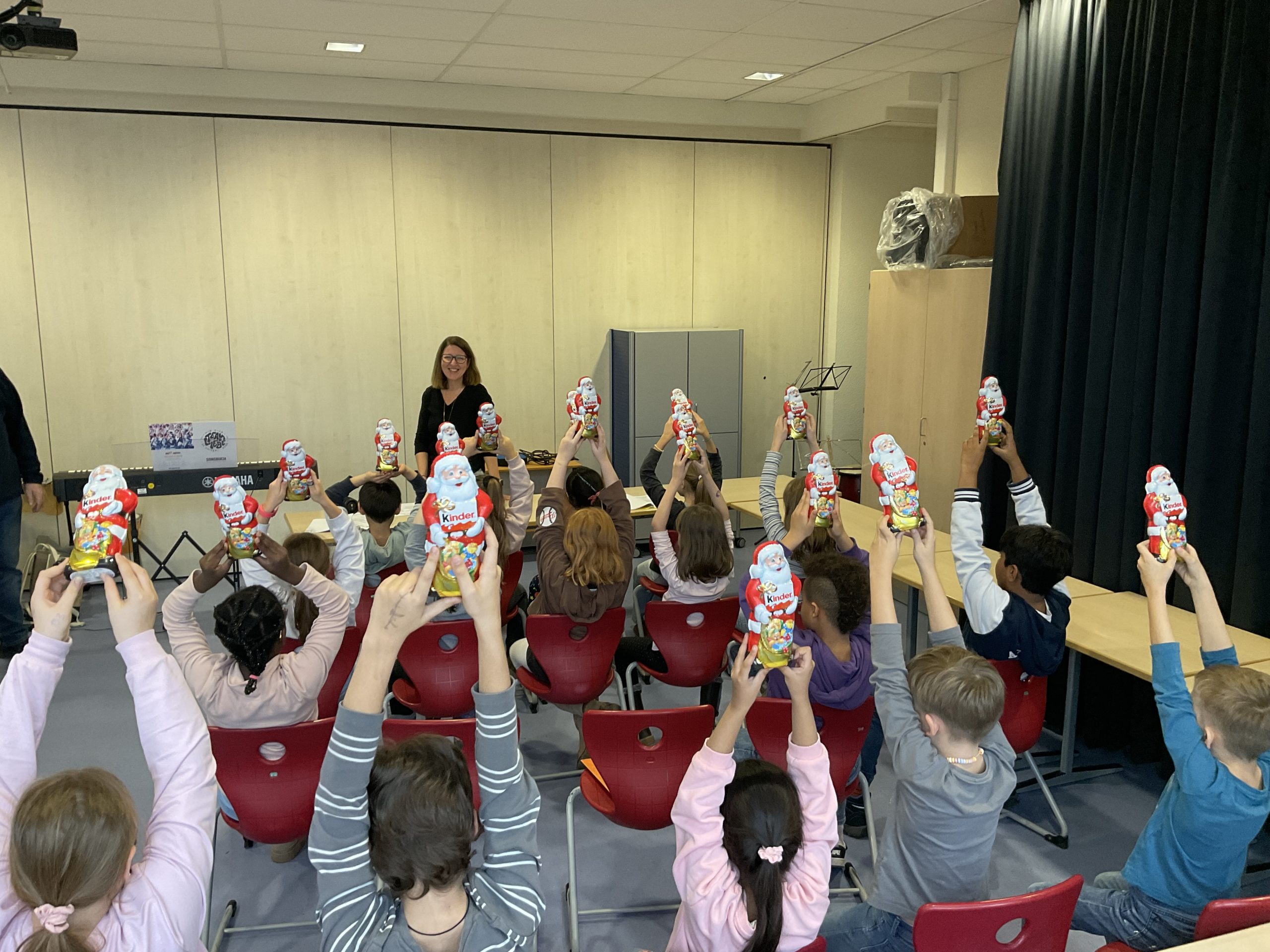 Einen ganz wichtigen Auftritt hatte der Nikolaus während einer Chorprobe unseres Schulchores. Die Kinder freuten sich über die süße Überraschung und wünschten eine gute weitere Reise.