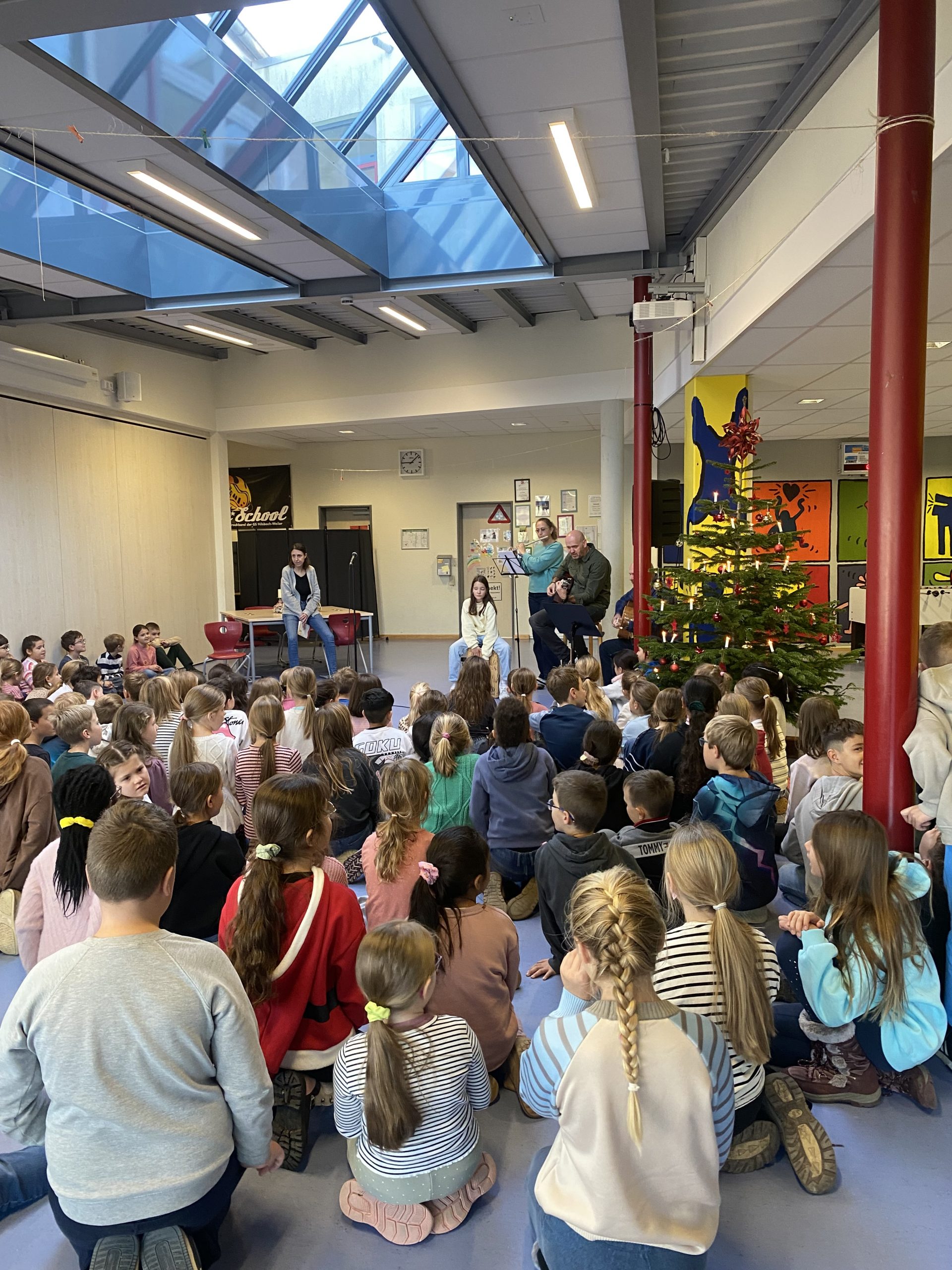 … wie jedes Jahr versammeln sich alle Schülerinnen und Schüler zum Wochenanfang um den Weihnachtsbaum und singen weihnachtliche Lieder.